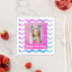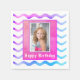 Diese niedlichen, farbenfrohen Geburtstagsnapkins mit einem Foto sind perfekt für Kinderfeiern. Abstrakte Wellen in Rosa und Blau. Ändern Sie das Foto mit Ihrem. Sie können auch den Text Happy Birthday ändern.