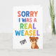 Eine schöne Entschuldigungskarte mit einem süßen Wieselcharakter mit humorvollem Insidertext über "rot-händig" gefangen mit klebrigen Pfoten. Perfekt für leichtere Entschuldigungen und jemanden nach einem Mishap zum Lächeln bringen. Generativekonzept