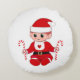 Niedlich Weihnachten Weihnachtself & Bonbons auf weißem Rundkissen.