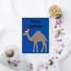 Diese phantastische Goldfolie-Postkarte zeigt ein digitales Kunstbild eines niedlichen sandbraunen Dromedary Camels mit schönen langen Wimpern und einem Single-Höcker auf dem Rücken. Das Kamel ist zum Weihnachtsfeiern mit einer rot-weißen Weihnachtsmannmütze auf dem Kopf gekleidet. Das Kamel ist in der Bibel zu sehen und ein traditionelles Symbol für Weihnachten. Auf der Vorderseite befindet sich ein eigener Text in schöner Goldfolie, sodass Sie Ihre Postkarte mit einer Nachricht Ihrer Wahl personalisieren können.