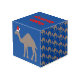 Dieser phantastische Weihnachtswürfel zeigt ein digitales Kunstbild eines niedlichen sandbraunen Dromedary-Kamels mit schönen langen Wimpern und einem Single-Höcker auf seinem Rücken. Das Kamel ist zum Weihnachtsfeiern mit einer rot-weißen Weihnachtsmannmütze auf dem Kopf gekleidet. Das Kamel ist in der Bibel zu sehen und ein traditionelles Symbol für Weihnachten. Oben befindet sich ein eigener Text, sodass Sie eine Nachricht hinzufügen können.