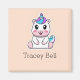 Niedliches, weißes Einhorn mit blauem und lila Horn auf rosa Hintergrund. Fügen Sie einfach einen Namen zu diesem ist ein niedliches Design.