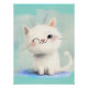 Niedliches kleines, weißes Kätzchen, das alle schmiedet und sein Auge windet. Spaß und Liebe zu jedem! Großartiges Design für Kinder. Fügen Sie Text oder mehrere Bilder hinzu, machen Sie es zu Ihrem.