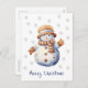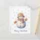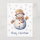Niedlicher Schneemann in Weiß-, Blau- und Brauntönen, umgeben von Schneeflocken. Einfach und charmant. Eine perfekte Karte, um sie an Freunde, Familie oder Firmenkunden zu senden.