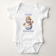 Niedlicher Schneemann in Blau, Weiß und Braun. Geschlechterneutrale Farben. Personalisierung möglich.