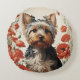 Niedlich Yorkshire Terrier Botanical Red Poppies Rundes Kissen