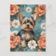 Niedlich Yorkshire Terrier Puppy Floral Postkarte