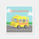 Ein gelber Schulbus mit glücklichen und lächelnden Kindern an Bord. Die Kinder sind froh, zur Schule zu gehen, um zu lernen und mit Freunden einzuholen! Diese Papierservietten sind ideal für einen Rücken zum Party oder ein Party mit Busmotiv! Personalisieren Sie Ihre Party-Nachricht.