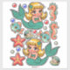 Niedliche Retro Mermaids im Stil der 50er Jahre, Fisch, Seepferd Meereswelt Fantasy Art Märchen Fantasy Fantasy Art Aufkleber Blatt