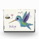 Dieses niedliche Design zeichnet sich durch einen grünen und lila glücklichen Kolibri mit einem Bienenfreund aus. Alles gemacht in fröhlicher Cartoon Illustration Stil!