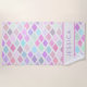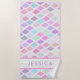Mit diesem niedlichen, modernen, abstrakten geometrischen Badetuch können Sie sich am Strand amüsieren und die Sonne genießen. Dieses Design zeichnet sich durch ein cooles geometrisches Muster in Pastelltönen in Rosa, Blau, Grün und lila in Diamantform vor weißem Hintergrund aus. Dieses Handtuch für den Strand oder das Baden mit dem Namen Ihrer Wahl. Schriftart und Textfarbe sind anpassbar.