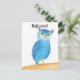 Niedliche blaue und lila abstrakte Eule wird auf benutzerdefinierten Postkarten gedruckt. Der Text über der Eule sagt: Helloooo! Die Eule hat einen hellblauen Körper, lila und blaue Federn und lila Ohren. Das bringt zwangsläufig ein Lächeln. Vielen Dank für Ihren Einkauf bei CherylsArt auf Zazzle.