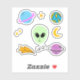 Niedliche Alien Kopf mit Planeten, UFO und Sternen Aufkleber