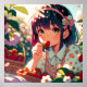 Niedliche Anime Girl Eating Erdbeeren | Sommertag Poster