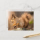Seitliches Profil eines niedlichen Roten Eichhörnchens mit buschigem Schwanz und Ohren, mit einer Nuss im Mund. Foto von Tony Wood