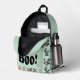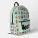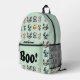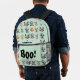 Dieser lustige, kinderfreundliche Halloween-Rucksack besticht durch ein spielerisches Design mit einem aquamarinen Hintergrund und reizvollen Halloween-Monstern im Stil eines Wasserfarbenkratzers. Jedes dieser Monster zeichnet sich durch ein einzigartiges, liebevolles Erscheinungsbild aus, das eine Touch von Kunsthandwerk und Spaß schafft. "Boo!" ist auf der vorderen Tasche mit einem bearbeitbaren Namen gerade oben!
