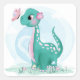 Niedliche Aquamarine Pink Dinosaur Butterfly Girl Quadratischer Aufkleber