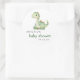 Diese niedlichen Babyduschaufkleber verfügen über einen grünen Aquarelldinosaurier über dem Begriff "Babydusche" im grünen Schriftart. Personalisieren Sie den Text mit dem Namen der Mama-to-be und das Datum in Holzkohle gray Sans Serif.