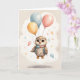 Eine wunderschöne Uhu mit farbenfrohen Luftballons, die von Wolken umgeben sind. Blank Grußkarte zum Geburtstag, Jubiläum, neues Baby, danke, etc.