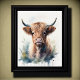Niedliche Aquarellmalerei einer Hochlandkuh 5:4 Poster