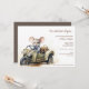 Stilvoll und lustig, diese niedliche Wasserfarbenmaus, die eine blaue Babydusche treibt, ist perfekt für alle Babyduschen geeignet. Das Design ist mit einer niedlich bemalten Wasserfarbenmaus ausgestattet, die lächelt, wenn er in einem grünen Auto sitzt und einen Tex hat, der auf Ihre Party-Planung angepasst werden kann. Auf der Rückseite ist ein Polka Dot-Muster über eine veränderbare Hintergrundfarbe.