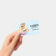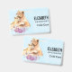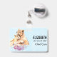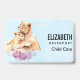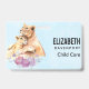 Ein Namensschild mit einer niedlichen Aquarellmalerei von einem Mutterleib, der ihren Baby-Krug hält. Ein hübscher, lila Blumenstrauß unter ihnen fügt diesem süßen und zauberhaften Bild eine sanfte Touch hinzu. Hellblauer Hintergrund.