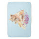 Eine Badematte mit einem niedlichen Aquarellbild eines Mutterlöhnen, der ihren Babykrug hält. Ein hübscher, lila Blumenstrauß unter ihnen fügt diesem süßen und zauberhaften Bild eine sanfte Touch hinzu. Hellblauer Hintergrund.