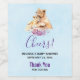 Event Flaschenetiketten mit niedlicher Aquarellmalerei eines Mütterlöwen, der ihren Babykrug hält. Ein hübscher, lila Blumenstrauß unter ihnen fügt diesem süßen und zauberhaften Bild eine sanfte Touch hinzu. Hellblauer Hintergrund.