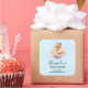 Business Aufkleber mit einem niedlichen Aquarellbild von einer Mutter Löwe, die ihren Babykrug hält. Ein hübscher, lila Blumenstrauß unter ihnen fügt diesem süßen und zauberhaften Bild eine sanfte Touch hinzu. Hellblauer Hintergrund.