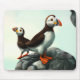 AI erstellte Kunstwerke von niedlichen Atlantikpuffins, die ihre Fanggründe von einem felsigen Aussichtspunkt aus besichtigten. Copyright W.H. Sim. Alle Rechte vorbehalten. Weitere Informationen unter zazzle.com/word2art