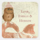 Oh, so große Niedliche Augen Owl und Fox Barn Wald Weihnachten Rote gegossene Hasen auf Niedlichen Little Brown Owl und ein Orange Sweater auf den Fox, um sie warm behalten. Personalisiert mit Ihren Namen und Sie Nachricht von der Liebe. Elfenbeinholz-Grasmuster auf einem Quadratsticker