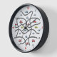 Niedliches Zimmer- oder Spielzimmer-Wanddekor mit Autos, Straßen und verschiedenen Illustrationen. Analoge Uhr mit Zahlen in verschiedenen Farben für Kinder zu lernen die Zeit.
