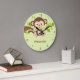 Eine entzückende Wanduhr mit niedlichem Babyaffen und ein Grünpolkapunkthintergrund für ein Mädchen oder ein Jungen-Kinderzimmer. Macht ein großes Geschenk! Zusammenpassende Einzelteile verfügbar in unserem Speicher. Einige Grafiken durch 1EverythingNice.