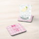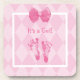 Ein niedliches "It's a girl" Untersetzer Set mit einem angesagten, rosa Raute Muster Hintergrund, verziert mit süßen kleinen Babyspuren und einem gürtelrosa Band in einem Bogen. Ersetzen Sie den anpassbaren Text durch den Namen Ihres neuen Mädchens.