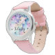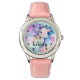 Kinderuhr aus Edelstahl mit rosa Lederarmband