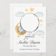 Eine niedliche und doch einfache Karte mit Baby-Ankündigung und Baby-Pinguin und Wolken rund um die Uhr mit Personalisierungsoption.
