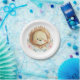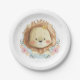 Schönes weiches Aquarell gekröntes Baby Löwe Bild mit Blumenmotiv Papierteller, ideal für Babyduschen und Geburtstage.