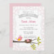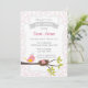 Babydusche mit Vogel-Design und Blumenhintergrund.