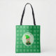 Niedliche Babyelf mit glücklichen Klee und Goldmünzen auf der grünen Tote Tasche.