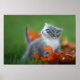 Niedliche Babykätzchen spielen draußen im Gras Poster