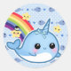 Niedliche Babynarwhal mit Regenbogen und Sternen Runder Aufkleber
