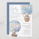 Baby Boy Dusche Einladung mit niedlichen Aquarellblau Bären in Ballons. Personalisiere es!