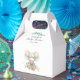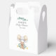 Trendy und niedliche rustikale Junge Dusche Gefälligkeitsbox mit einem Babybär auf Eukalyptus, Brötchen, mit Ballons. Ideal für Jungen und geschlechtsneutrale Babyduschen.