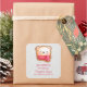 Gastgeschenk danke Ihnen Aufkleber mit einem niedlichen und bezaubernden Bären Gesicht Set auf einem Cookie Basis. Tragen eines rot-weiß gestreiften Schals. Hintergrund ist ein Muster, das das Aussehen von fallenden Schnee, in Silber und Weiß hat.