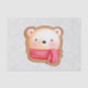 Gewebepapier mit einem niedlichen und bezaubernden Bär ist mit Set auf einer Keksbasis versehen. Tragen eines rot-weiß gestreiften Schals. Hintergrund ist ein Muster, das das Aussehen von fallenden Schnee, in Silber und Weiß hat.