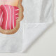 Tapisserie mit einem niedlichen und bezaubernden Bären Gesicht Set auf einer Keksbasis. Tragen eines rot-weiß gestreiften Schals. Hintergrund ist ein Muster, das das Aussehen von fallenden Schnee, in Silber und Weiß hat.