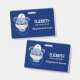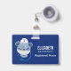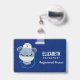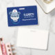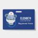 Benennen Sie Abzeichen mit einer niedlichen Abbildung eines blauen Bären, der einen Krankenschwestern trägt, der ein kleines Herz darauf hat. Auch mit einer Schutzmaske und einem blauen Stetheskop versehen.