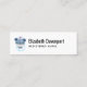 Mini-Visitenkarten mit einer niedlichen Abbildung eines blauen Bären, der eine Krankenschwester trägt, die mit einem kleinen Herz darauf ist. Auch mit einer Schutzmaske und einem blauen Stetheskop versehen.