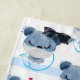 Ein Strandtuch mit einer niedlichen Abbildung eines blauen Bären, der eine Krankenschwester trägt, auf der ein kleines Herz steht. Auch mit einer Schutzmaske und einem blauen Stetheskop versehen.