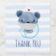 Vielen Dank, dass Sie die Flaschenetiketten mit einer niedlichen Illustration eines blauen Bären tragen, der einen Schwesternhut mit einem kleinen Herz darauf trägt. Auch mit einer Schutzmaske und einem blauen Stetheskop versehen.
